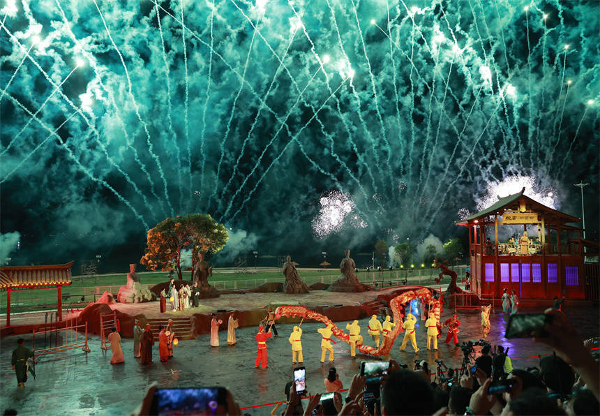 吉安青原区庐陵湾“庐陵之光”烟花实景表演吸引市民来观看。 李超摄